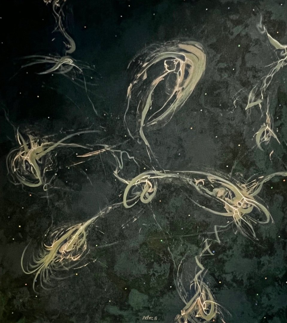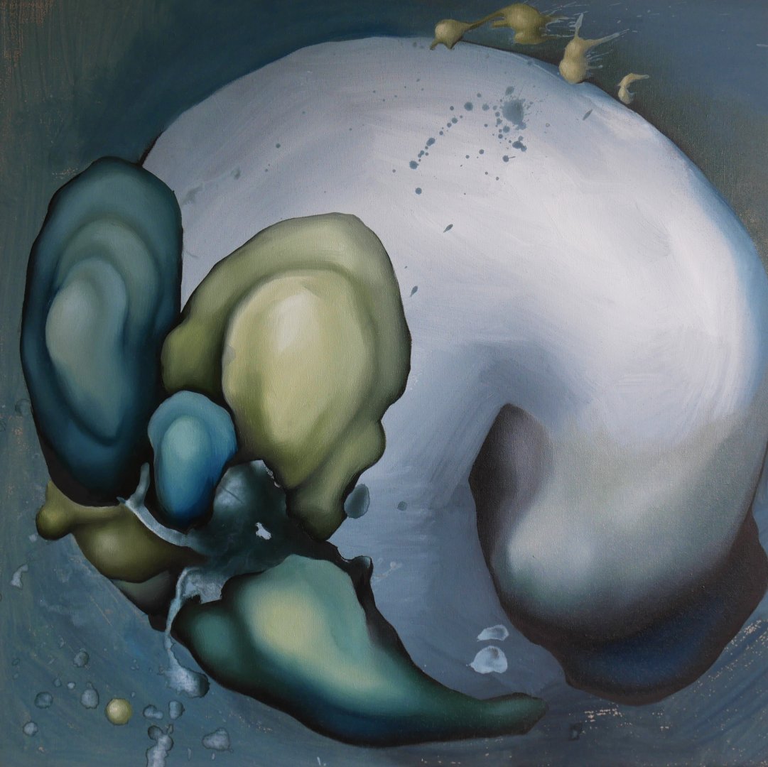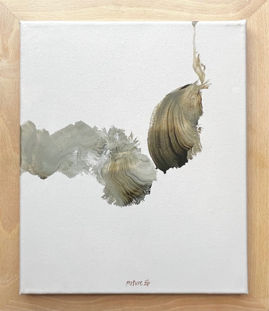 Výstava představuje setkání dvou autorů abstraktní malby. Miroslav Pošvic (*1959) se etabloval v oboru litografie, malba mu však dovoluje mazlit se s barvou, využívat její transparentnosti i plasticity, pohrávat si s modelací tvarů a jejich stínů, nořit se do hloubky prostoru. Jeho tvorba si vždy uchovává humorný nadhled, pracuje s nadsázkou. Na výstavě je k vidění i jeho litografie Snesitelná tíha bytí, která vyhrála na Grafice roku 2024. Alžběta Rajchlová (*1999) je mladá malířka, kterou lesy obklopující město, kde vyrůstala, inspirovaly k tvorbě vycházející z přírodního tvarosloví, které volně rozvíjí a nechává ho bujet ve fantazijních kompozicích. V práci s poloabstraktními tvary připomínající tajemné, dosud neznámé organismy ji ovlivnila také stáž na Novém Zélandu. Svou kolekci na tuto výstavu nazvala Vzpomínky na planetu uprostřed oceánu.